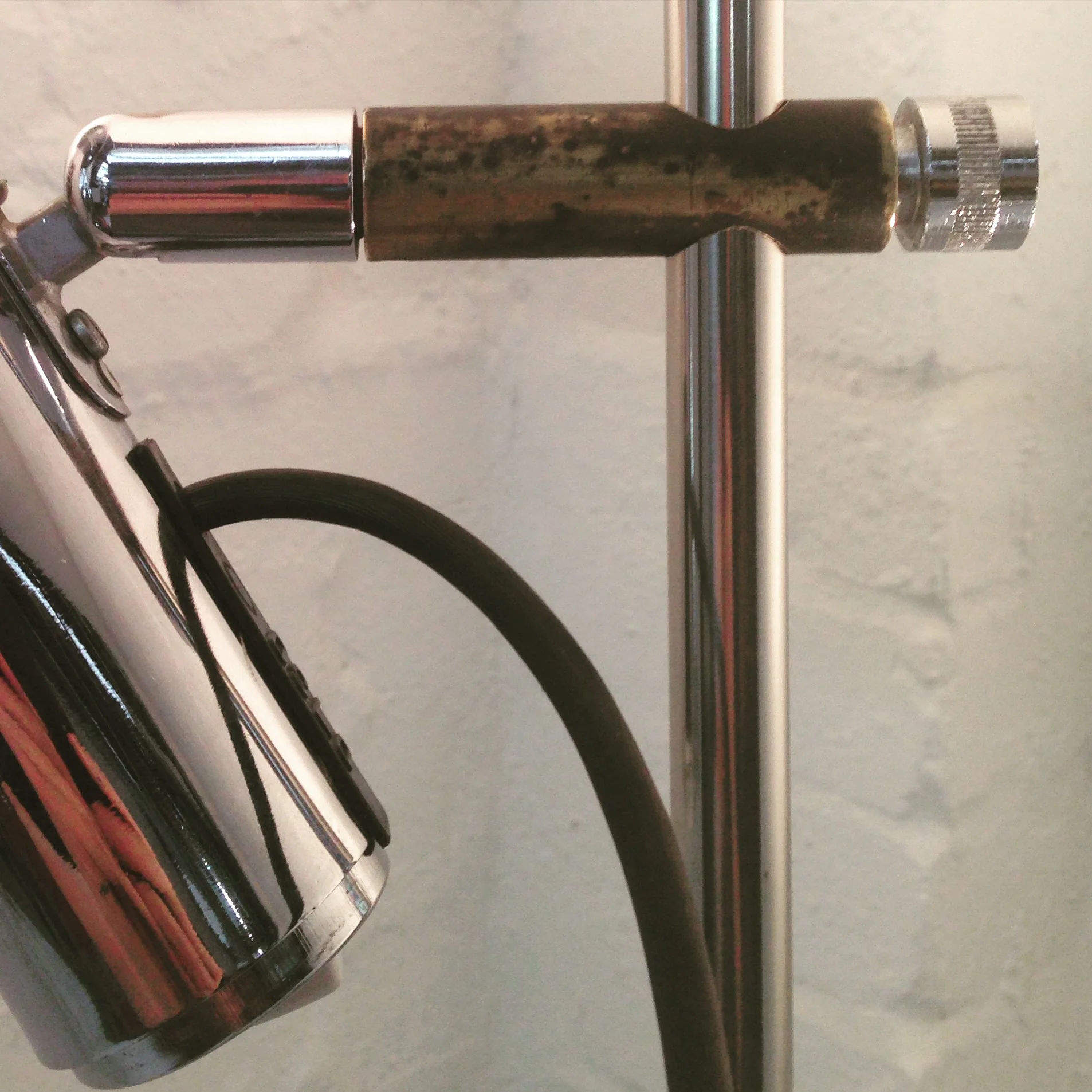 Excellent restored condition. New cloth cord. Tested and tagged to Australian Standards. Chrome in very good condition with very minor pitting.