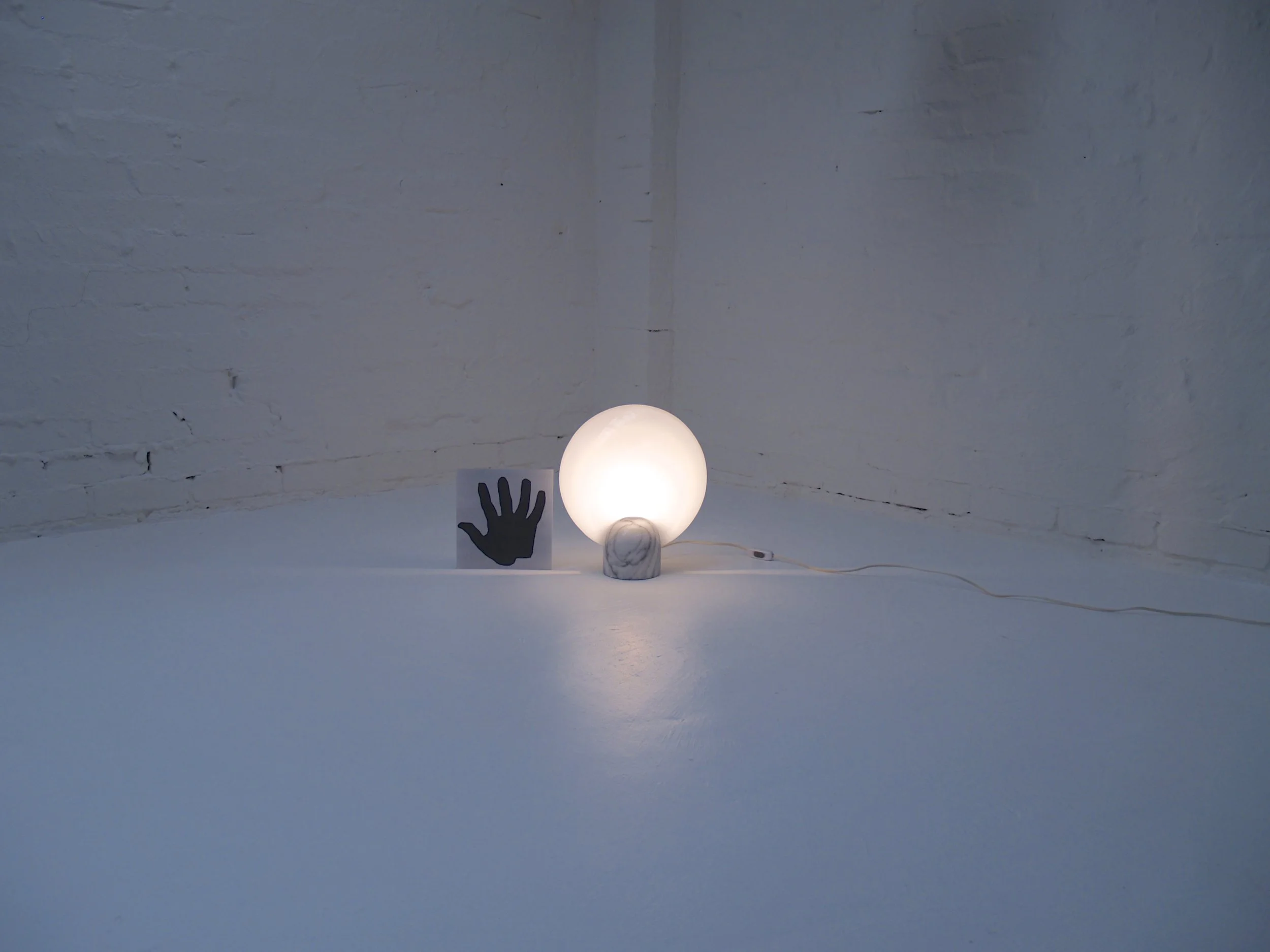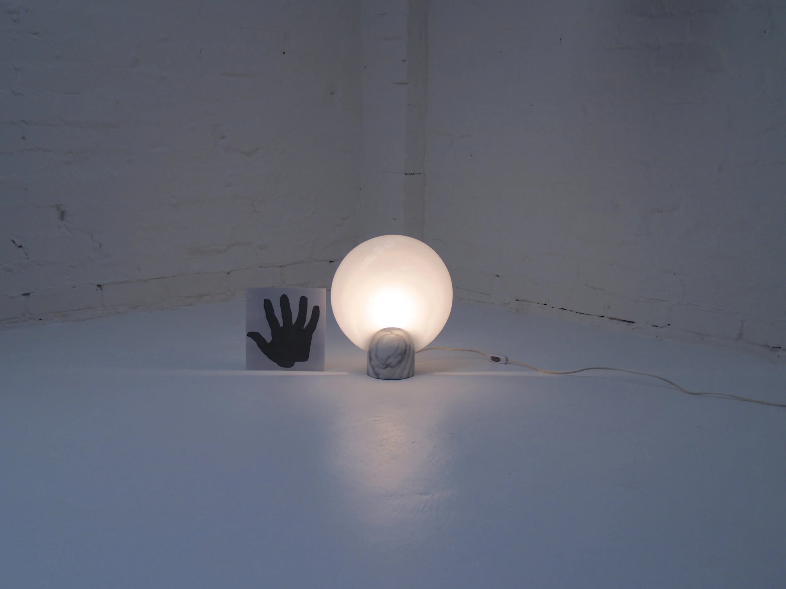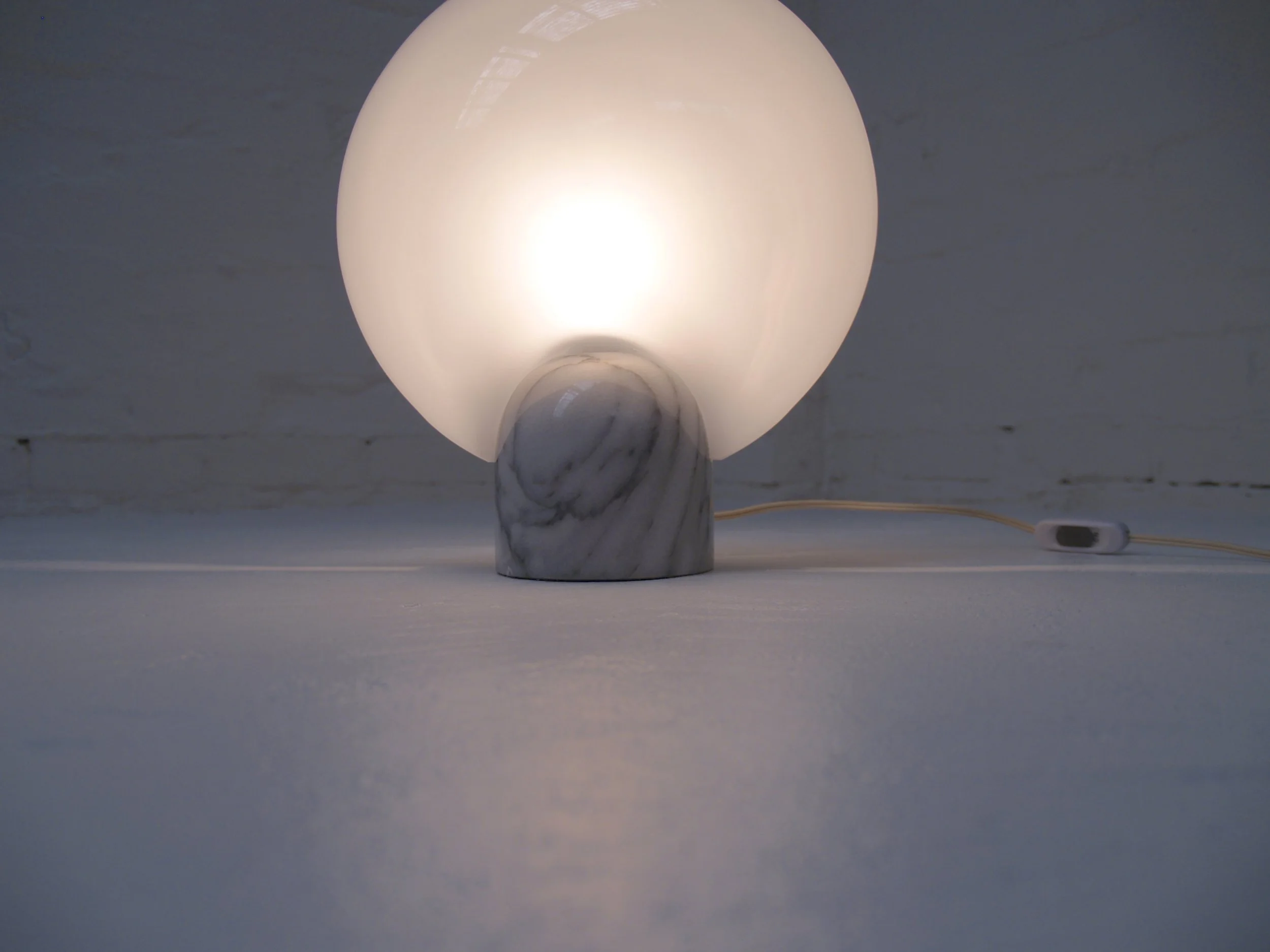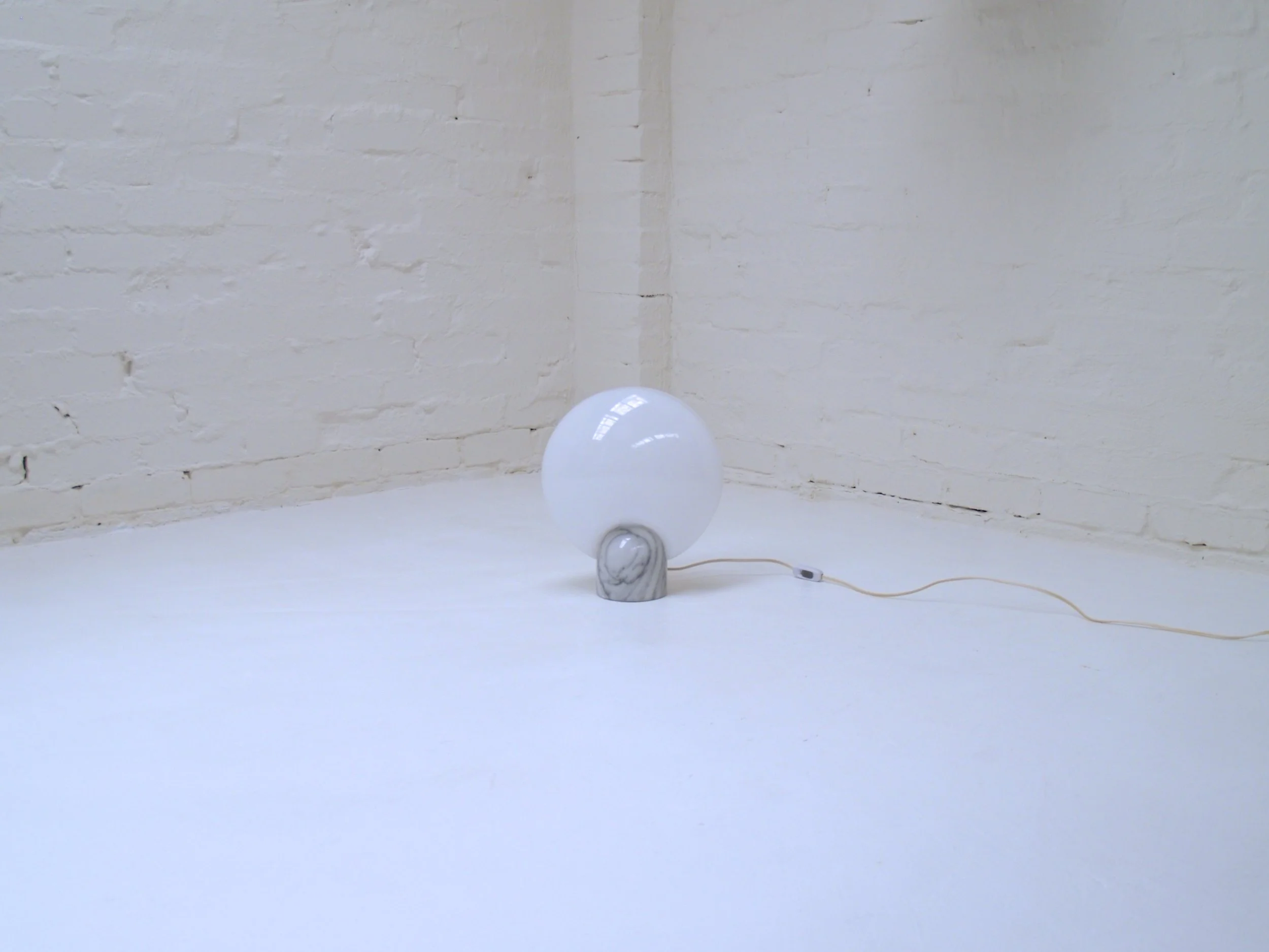 Foxing extensive to brass finish on all parts, forming an appealing patina. Excellent structural condition. Carrara marble base excellent. Inner surfaces of shades excellent. Bakelite bulb fixtures excellent. Fully rewired, tagged and tested to Australian standards.