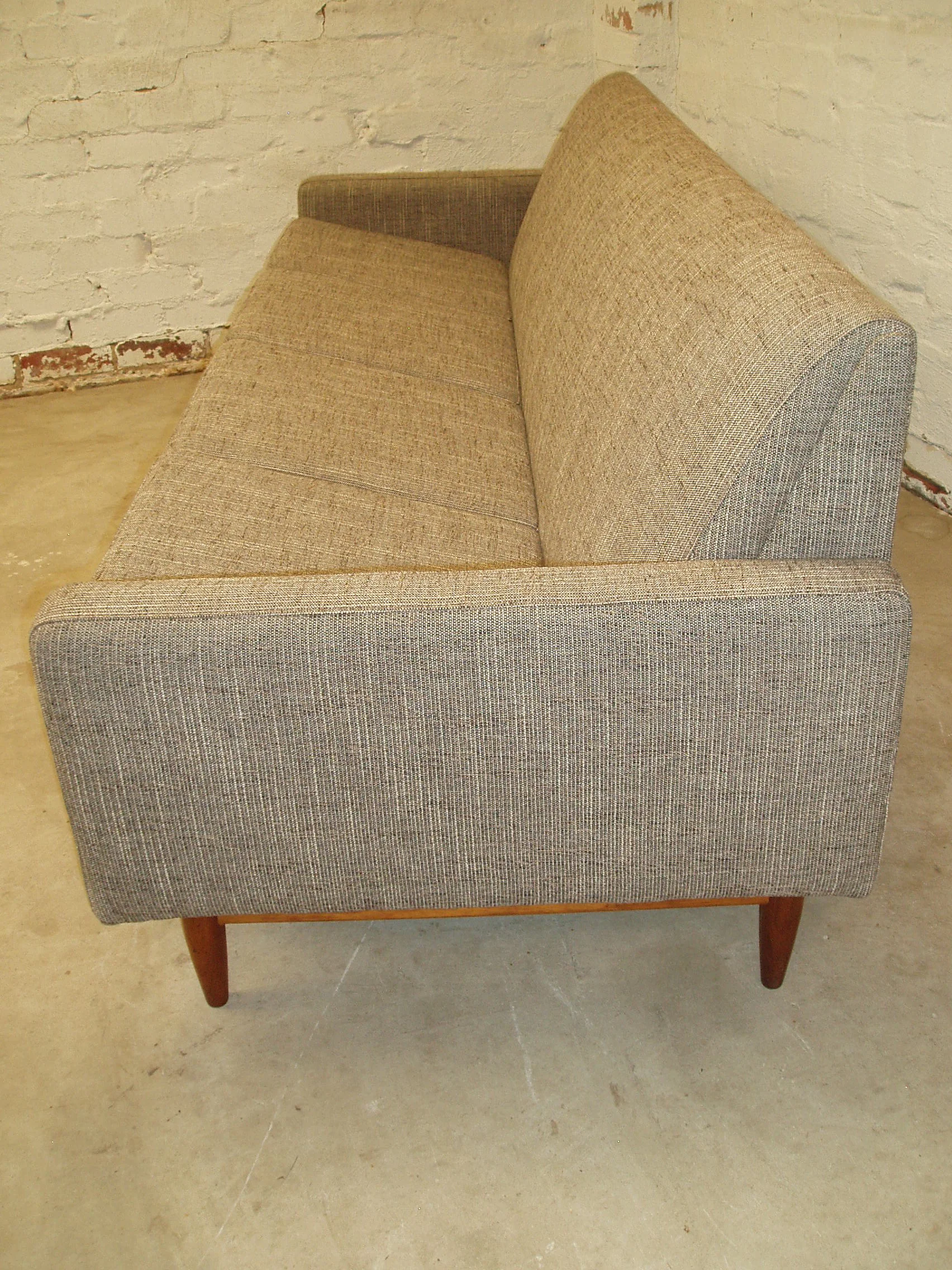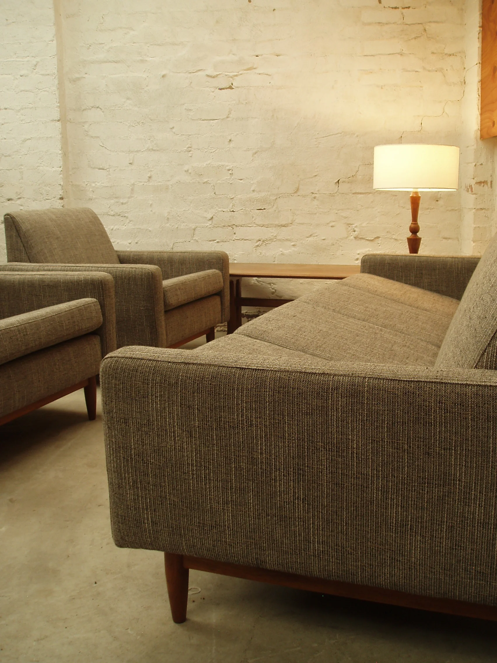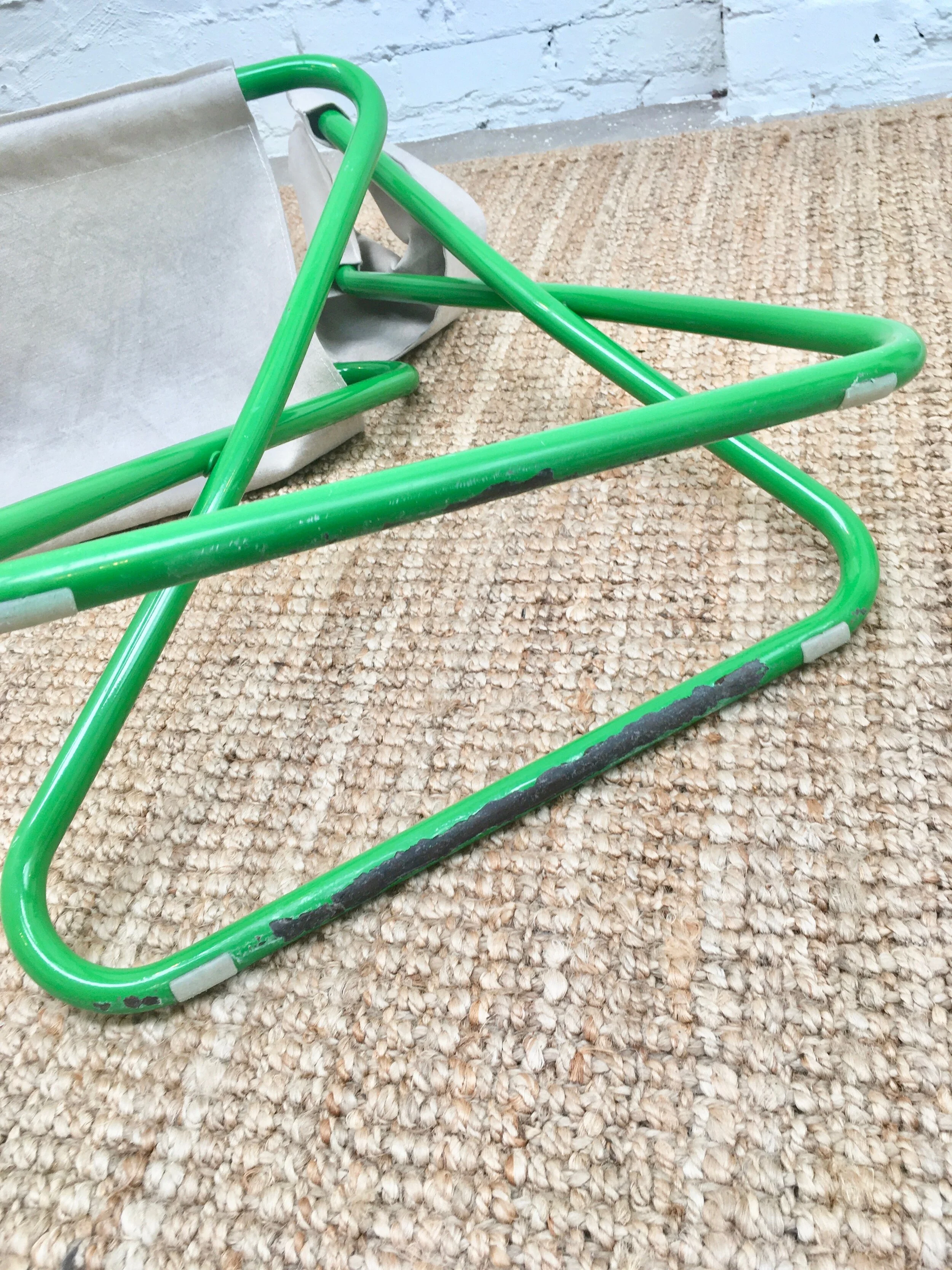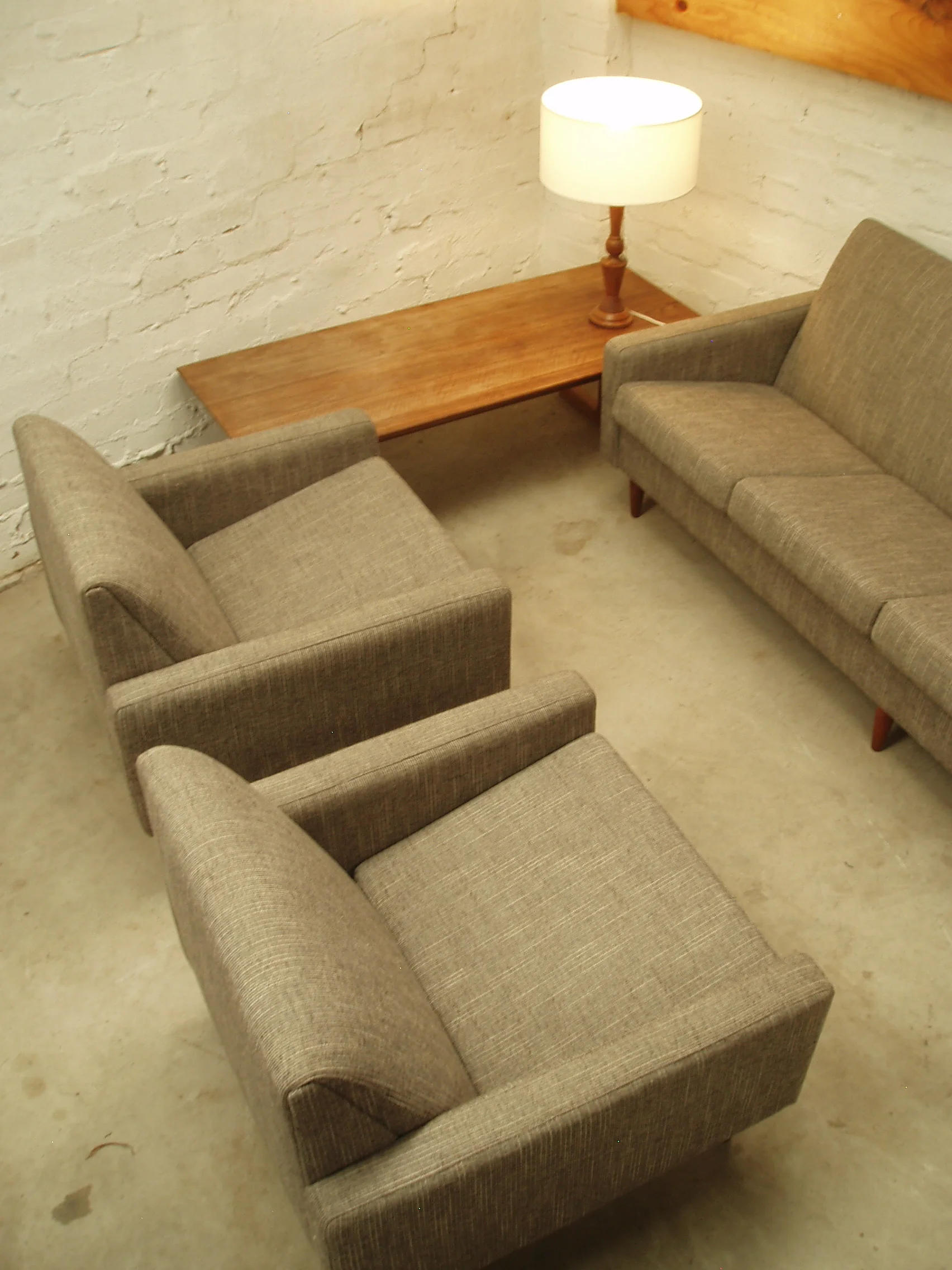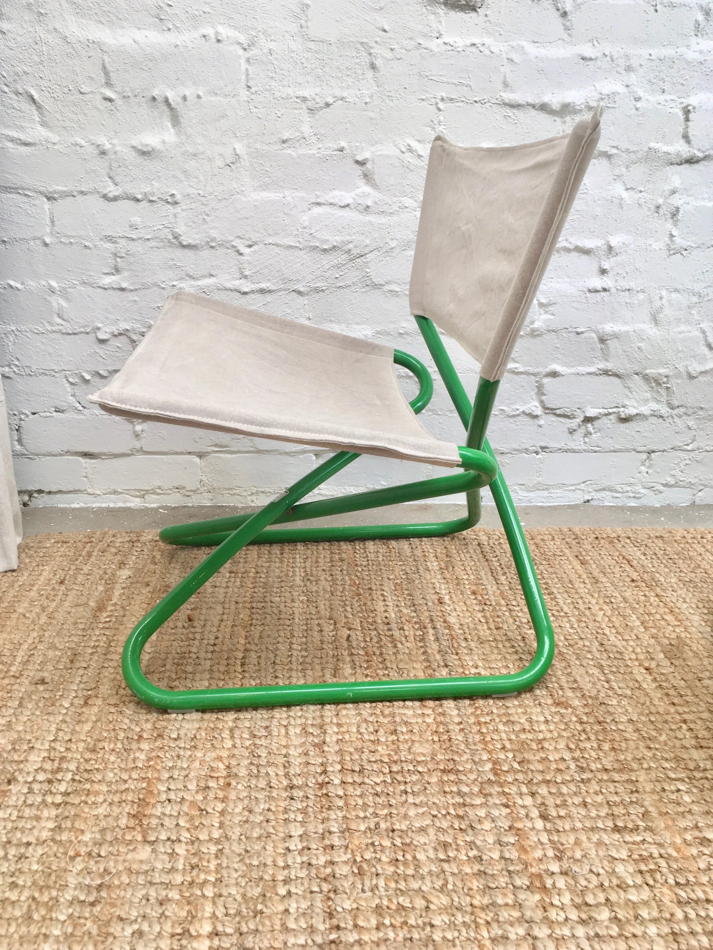 It was originally available in an upholstered version. We decided to preserve the frame and create a string version to emphasise the relaxed shape and 50s styling. The original Kauri timber armrests have been stripped and recoated but their character preserved. We've used a high quality cotton sash cord for the weave.